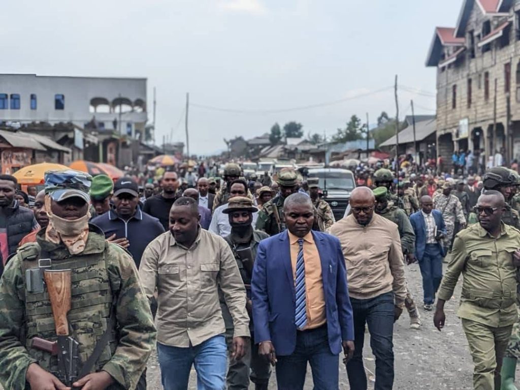 Flanked by his two deputy governors and several senior members of the AFC/M23 movement, the provincial leader was greeted by traditional chiefs, local authorities, and jubilant crowds.